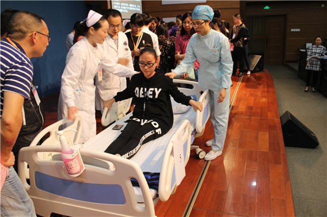 會(huì)議第三天(12日)上午,則安排了參會(huì)學(xué)員分組現(xiàn)場實(shí)踐、操練,老師從旁指導(dǎo)的環(huán)節(jié),學(xué)員們在老師指導(dǎo)下分別進(jìn)行了“肺功能檢查與6分鐘步行距離”、“ 無創(chuàng)通氣與呼吸力學(xué)”、“ 運(yùn)動(dòng)康復(fù)訓(xùn)練”、“ 氣道廓清技術(shù)”、“ 誤吸診斷治療”以及“纖維支氣管鏡操作”、“加溫加氧超聲霧化儀+鄭氏康復(fù)呼吸閥+無創(chuàng)通氣(采用口鼻罩、鼻罩)(在臥位、坐位、原地踏步下)清除氣道分泌物”和“無創(chuàng)通氣下的氣管插管技術(shù)”等項(xiàng)目的的臨床實(shí)習(xí)與操練。同時(shí),趙東瓊主管護(hù)師還提出了開展肺康復(fù)技術(shù)和相關(guān)醫(yī)囑開立的一些現(xiàn)實(shí)問題,并給出了一些解決的參考辦法。