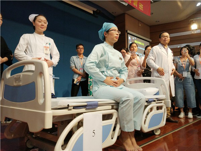 會(huì)議第一天(10日),首先進(jìn)行的是第一屆4S呼吸康復(fù)治療理論和實(shí)踐快速培訓(xùn)班;鄭則廣教授帶領(lǐng)廣州呼吸疾病研究所26樓病區(qū)呼吸康復(fù)團(tuán)隊(duì)給現(xiàn)場的醫(yī)護(hù)人員講授鄭氏呼吸康復(fù)治療理論并進(jìn)行康復(fù)技術(shù)手把手訓(xùn)練,內(nèi)容包括:重癥、高齡患者的全身運(yùn)動(dòng)康復(fù)方法、呼吸肌肉康復(fù)、圍手術(shù)期快速康復(fù)、氣道分泌物清除方法、誤吸、吞咽和發(fā)音康復(fù)、重癥患者消化功能康復(fù)方法等。接著,鄭教授帶領(lǐng)呼吸康復(fù)團(tuán)隊(duì)的醫(yī)護(hù)人員現(xiàn)場示范,并對學(xué)員進(jìn)行了手把手的實(shí)習(xí)訓(xùn)練。