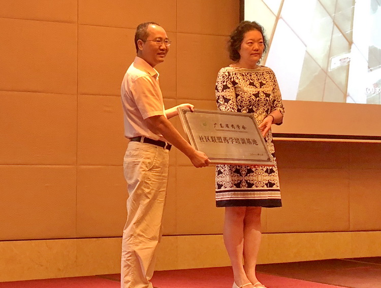 第二部分:7月21日上午,是以“慢病管理”為主題的學(xué)術(shù)報(bào)告。學(xué)術(shù)報(bào)告開(kāi)始前,陳民喜書(shū)記向廣州醫(yī)科大學(xué)附屬第一醫(yī)院藥學(xué)部魏理主任授予了“廣東省藥學(xué)會(huì)社區(qū)聯(lián)盟藥學(xué)培訓(xùn)基地”牌匾。