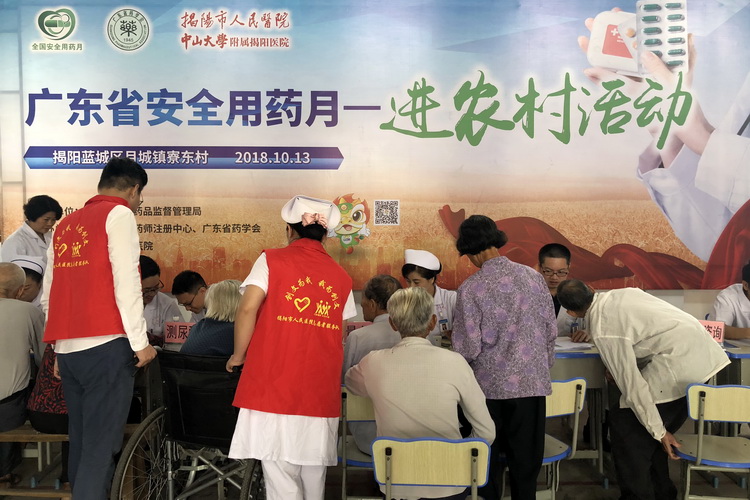 為配合《“十三五”國(guó)家藥品安全規(guī)劃》和“2018廣東省安全用藥月”系列活動(dòng),10月13日,揭陽(yáng)市人民醫(yī)院成功舉辦了“廣東省安全用藥月--進(jìn)農(nóng)村活動(dòng)暨揭陽(yáng)市人民醫(yī)院健康扶貧、敬老大型公益活動(dòng)”,走進(jìn)月城鎮(zhèn)寮東村。本活動(dòng)由廣東省食品藥品監(jiān)督管理局主辦、廣東省執(zhí)業(yè)藥師注冊(cè)中心和廣東省藥學(xué)會(huì)協(xié)辦。