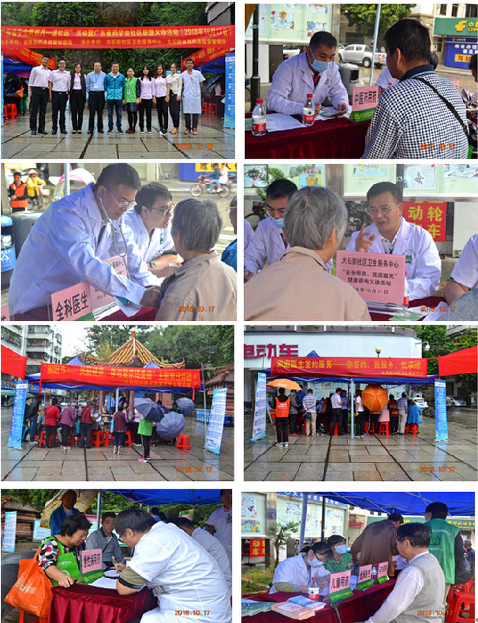 各活動(dòng)點(diǎn)均由廣東省藥學(xué)會(huì)社區(qū)聯(lián)盟成員單位的各中心主任親自帶隊(duì),組織所在單位的醫(yī)師(含家庭醫(yī)生)、藥師(含家庭藥師)、健康管理師等共同參與,部分活動(dòng)點(diǎn)還邀請了中山大學(xué)孫逸仙紀(jì)念醫(yī)院、廣州醫(yī)科大學(xué)附屬第三醫(yī)院等三甲醫(yī)院專家參加,為所在社區(qū)居民提供安全用藥科普咨詢及指導(dǎo)?;顒?dòng)內(nèi)容豐富多彩,包括免費(fèi)量血壓、測血糖、測血脂、測尿酸、艾灸、貼耳穴、推拿,以及安全用藥咨詢和派發(fā)安全用藥知識小冊子、小禮品等。有些義診點(diǎn)還制作了“安全用藥一起行動(dòng)”視頻宣傳片現(xiàn)場播放并供市民下載學(xué)習(xí),將有關(guān)安全用藥、正確服藥方法、家庭藥品儲(chǔ)存、看好藥品說明書等常識內(nèi)容巧妙加入片中,讓居民更加容易接受和學(xué)習(xí)。有些活動(dòng)點(diǎn)著重宣傳家庭小藥箱常備藥品的選擇、購買、服用的注意事項(xiàng)以及不同人群該如何正確服藥、服錯(cuò)藥后的家庭急救辦法等。有的還同時(shí)開展了家庭醫(yī)生簽約服務(wù)。