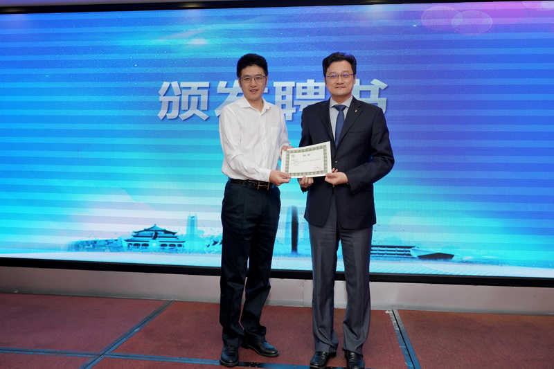 鄭志華副理事長(zhǎng)兼秘書(shū)長(zhǎng)向賁嘵松主任委員頒發(fā)聘書(shū)