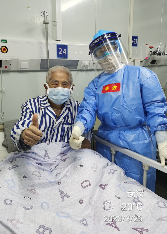 3月26日,季波主任在同事們的協(xié)助下,穿戴好防護(hù)服,勇敢地走進(jìn)了紅區(qū)!