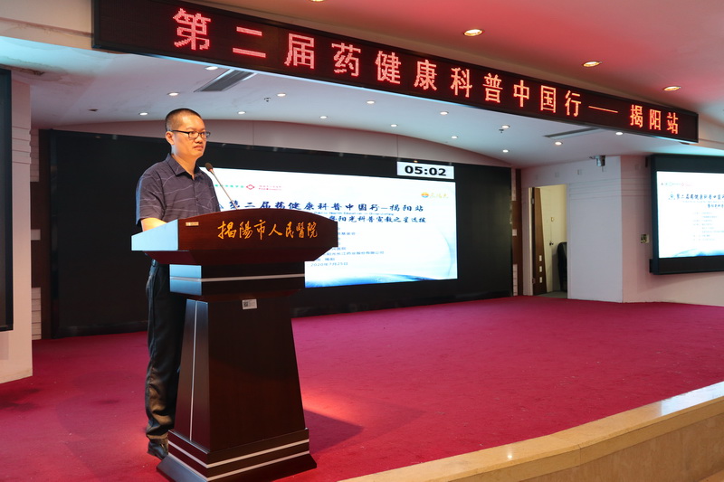 揭陽市醫(yī)學(xué)會會長、揭陽市人民醫(yī)院王彥波副院長應(yīng)邀蒞臨并致辭。王彥波副院長說:隨著國家醫(yī)藥衛(wèi)生體制改革的不斷推進,藥學(xué)服務(wù)已經(jīng)成為臨床診療過程中不可或缺的重要組成部分。安全用藥、合理用藥的知識宣教任重道遠,希望廣大藥師積極普及大眾安全用藥常識,給每一位患者提供最優(yōu)的藥事服務(wù),體現(xiàn)藥師職業(yè)價值,為我國人民生命健康事業(yè)做出應(yīng)有的貢獻。