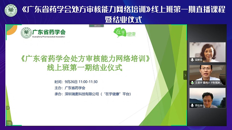 《廣東省藥學(xué)會處方審核能力網(wǎng)絡(luò)培訓(xùn)》線上班第一期結(jié)業(yè)儀式成功舉辦
