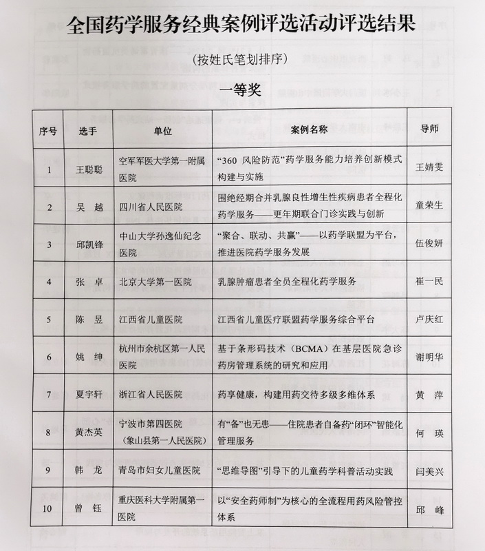 關(guān)于公布2020年全國藥學(xué)服務(wù)經(jīng)典案例評選結(jié)果的通知