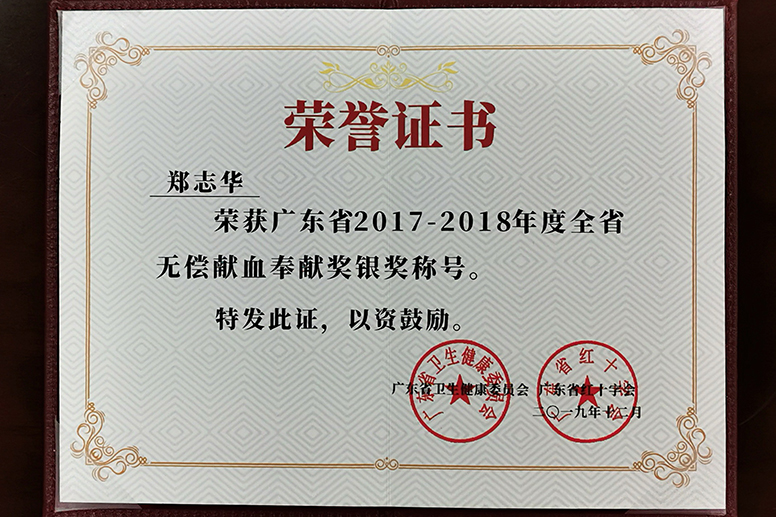 生命不息、獻(xiàn)血不止--廣東省藥學(xué)會(huì)鄭志華秘書長(zhǎng)榮獲全省無(wú)償獻(xiàn)血奉獻(xiàn)銀獎(jiǎng)光榮稱號(hào)