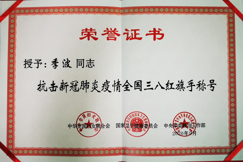 熱烈祝賀季波主任榮獲全國(guó)三八紅旗手光榮稱號(hào)