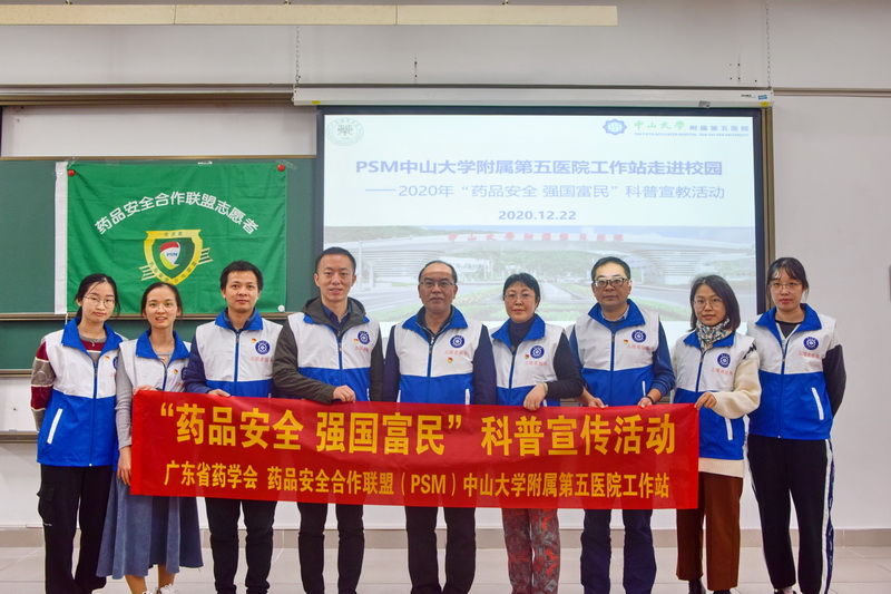 大學(xué)生是祖國的未來和民族的希望,為進(jìn)一步加強(qiáng)大學(xué)生禁毒宣傳教育工作,讓大學(xué)生認(rèn)清毒品的危害。2020年12月22日,藥品安全合作聯(lián)盟(PSM)中山大學(xué)附屬第五醫(yī)院工作站志愿者團(tuán)隊(duì)在藥學(xué)部副主任羅文基,調(diào)劑室趙慧彬主任的帶領(lǐng)下走進(jìn)中山大學(xué)珠海校區(qū),開展以“拒絕毒品 守護(hù)健康”為主題的科普宣傳活動(dòng)。