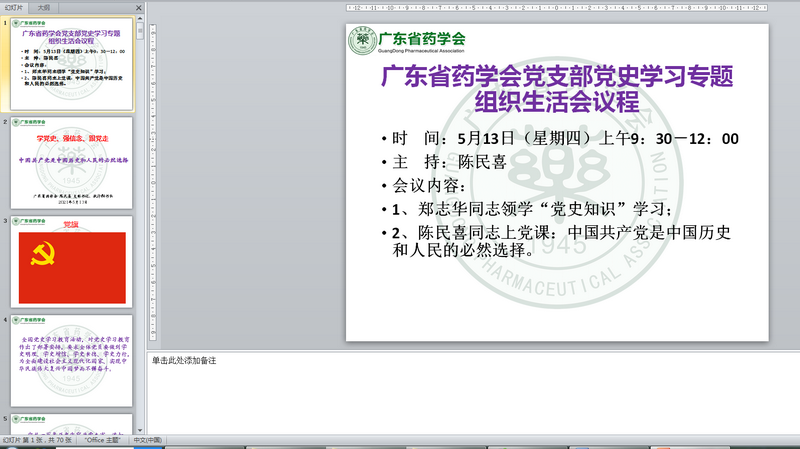 廣東省藥學(xué)會(huì)黨支部召開黨史學(xué)習(xí)專題組織生活會(huì)