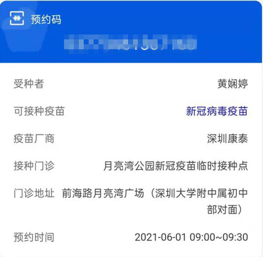 廣東省藥品監(jiān)督管理局派駐深圳康泰生物制品股份有限公司的檢查員黃嫻婷在6月1日成功預(yù)約了新冠病毒疫苗接種,預(yù)約的正是由深圳康泰生物制品股份有限公司自主研發(fā)生產(chǎn)的新冠病毒疫苗。