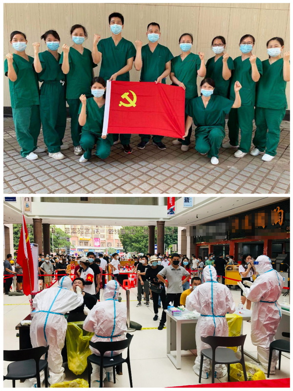6月10日支援荔灣西村街道核酸檢測(cè)任務(wù)中,在浦主任發(fā)出自愿應(yīng)征信息后,6分鐘秒殺名額。藥劑科9名藥師出征,包括家住荔灣的預(yù)備黨員劉明成,第二次出征的“多面手”林小魯和“活潑小妹”陳素敏,“快刀手”吳曉華等等。