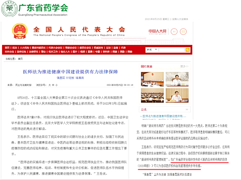全國人大全媒體發(fā)文充分肯定廣東省藥學(xué)會超說明書用藥規(guī)范管理工作