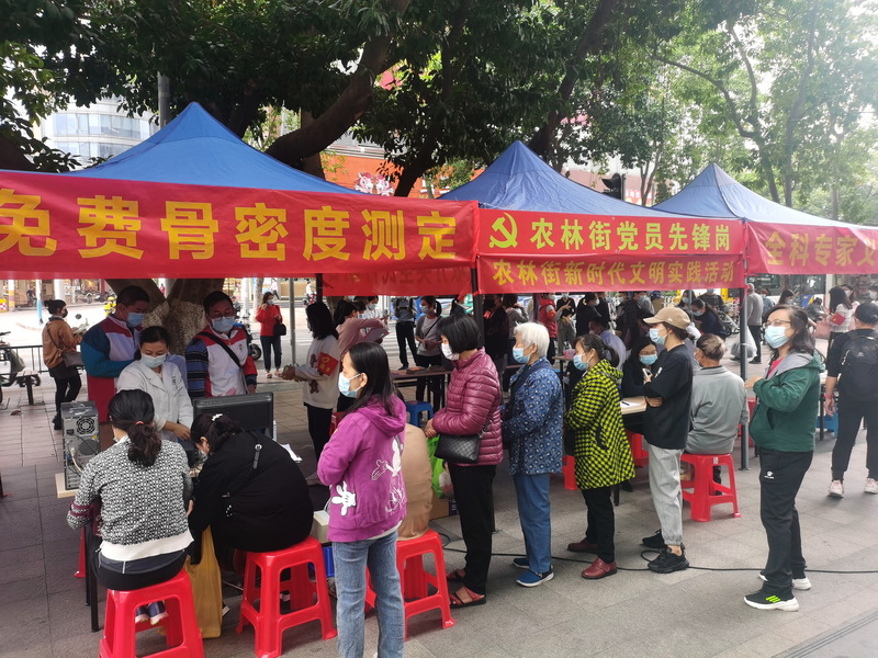 活動(dòng)得到廣大市民的積極響應(yīng),尤其是開設(shè)的免費(fèi)測(cè)骨密度測(cè)定、免費(fèi)B超檢測(cè)、免費(fèi)血壓測(cè)量等項(xiàng)目吸引了大量居民的排隊(duì)參與,家門口的免費(fèi)服務(wù)項(xiàng)目讓他們深感方便,為民服務(wù)落到實(shí)處,個(gè)個(gè)參與者都點(diǎn)贊。有大媽說“真是太方便了,我出門買菜還能順路找專家免費(fèi)測(cè)個(gè)骨密度、做個(gè)B超,咨詢一下高血壓藥怎么吃最安全,不用去醫(yī)院掛號(hào)、排隊(duì)那么辛苦,這活動(dòng)真是送到我們心坎上了!”。 (撰稿社區(qū)聯(lián)盟秘書、海珠區(qū)南石頭街社衛(wèi)姜清芳)