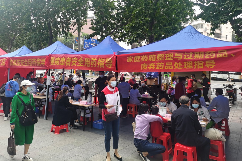 本次科普進(jìn)社區(qū)活動(dòng)的一大亮點(diǎn)是開展用藥指導(dǎo)的藥師團(tuán)隊(duì)都來自基層有豐富藥物管理和治療經(jīng)驗(yàn)的社區(qū)藥師,有來自天河區(qū)冼村街社區(qū)衛(wèi)生服務(wù)中心的梁銳主管藥師和白云區(qū)同德街社區(qū)衛(wèi)生服務(wù)中心的陳麗美主管藥師為居民帶來孕期婦女安全用藥指導(dǎo);來自海珠區(qū)瑞寶街社區(qū)衛(wèi)生服務(wù)中心的盧麗姬副主任藥師和來自海珠區(qū)江海街社區(qū)衛(wèi)生服務(wù)中心的曾陶桃主管藥師為街坊帶來家庭藥師用藥指導(dǎo);來自海珠區(qū)南石頭街社區(qū)衛(wèi)生服務(wù)中心的姜清芳副主任藥師和來自海珠區(qū)鳳陽(yáng)街社區(qū)衛(wèi)生服務(wù)中心的周麗萍主管藥師給居民帶來慢病患者安全用藥指導(dǎo);來自天河區(qū)華師社區(qū)衛(wèi)生服務(wù)中心的黃小舟副主任藥師、天河區(qū)石牌街社區(qū)衛(wèi)生服務(wù)中心的朱順霞主管藥師、天河區(qū)天河南街社區(qū)衛(wèi)生服務(wù)中心的范耀佳主管藥師和彭慧芳主管藥師為群眾帶來家庭藥箱整理與過期藥品-廢棄藥品處理指導(dǎo);來自白云區(qū)同德街社區(qū)衛(wèi)生服務(wù)中心的蔡順儀主管藥師、白云區(qū)京溪街社區(qū)衛(wèi)生服務(wù)中心的黃麗華主管藥師、白云區(qū)石井街社區(qū)衛(wèi)生服務(wù)中心的鄧麗敏主管藥師和來自荔灣區(qū)華林街社區(qū)衛(wèi)生服務(wù)中心的盧淑紅主管藥師為居民帶來高血壓安全用藥指導(dǎo)。