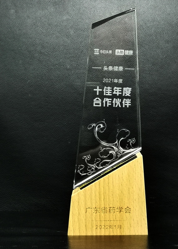 廣東省藥學(xué)會被今日頭條評為“2021年度十佳合作伙伴”
