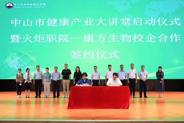 活動現(xiàn)場,火炬職業(yè)技術(shù)學院健康產(chǎn)業(yè)學院院長郭麗華和康方生物醫(yī)藥有限公司執(zhí)行副總裁李百勇簽署“康方訂單班”校企合作協(xié)議。