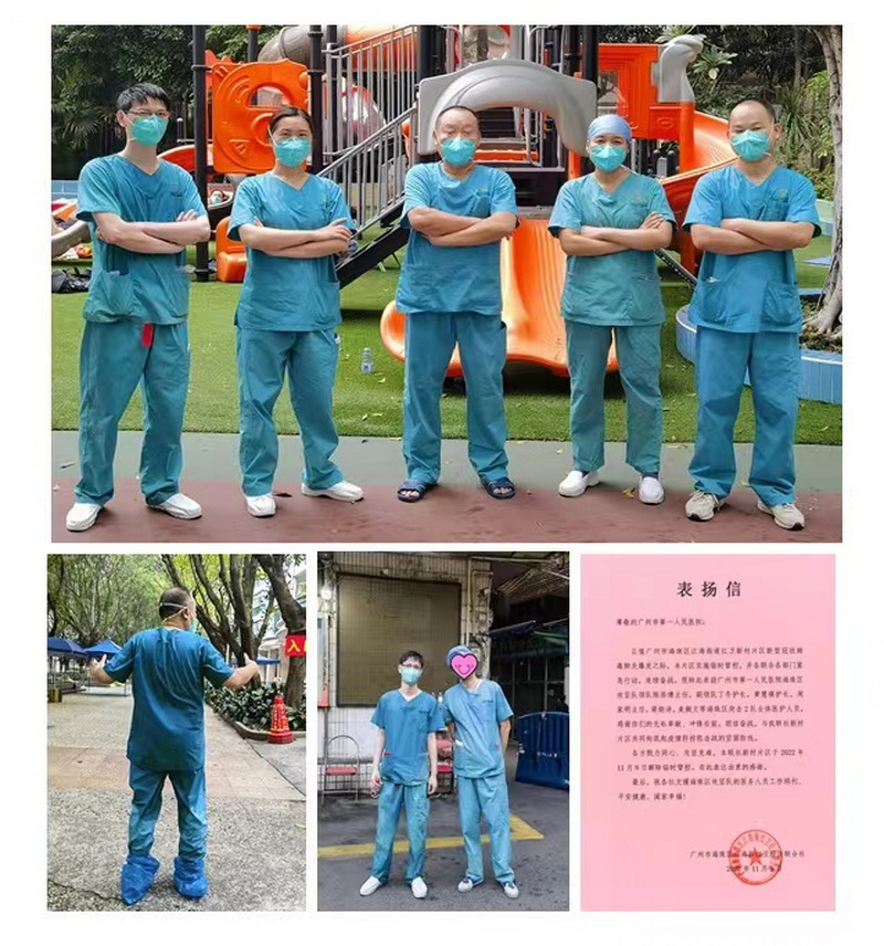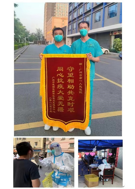一、“疫”不容辭,“藥”有所為。今年10月廣州市花都區(qū)突發(fā)疫情,抗疫力量緊缺。10月15日下午3點(diǎn),接到上級緊急通知,要求集結(jié)院區(qū)人員組成應(yīng)急核酸采樣突擊隊支援花都。藥劑科靜配中心孔慶輝、冼建鵬、駱文威藥師積極報名,主動參加抗疫突擊隊,奔赴花都封控區(qū)抗疫一線。隊伍來到花都已經(jīng)是傍晚,剛下車就接到第一個任務(wù):前往封控社區(qū)給居家隔離的市民采集核酸,居民樓大多都是樓梯房,樓道內(nèi)燈光昏暗,環(huán)境悶熱,加之穿著防護(hù)服,他們顧不得被汗水濕透的衣服,霧氣蒸騰的面屏,泡出皺褶的雙手,一絲不茍地嚴(yán)格按照防疫要求完成了任務(wù),收隊時默默看了下表,已經(jīng)是凌晨四點(diǎn)了,第二天又開始新的抗疫任務(wù)。在花都突擊隊任務(wù)結(jié)束后,孔慶輝、冼建鵬藥師轉(zhuǎn)戰(zhàn)白云突擊隊,而駱文威藥師則轉(zhuǎn)戰(zhàn)疫情調(diào)度專班,繼續(xù)戰(zhàn)斗。