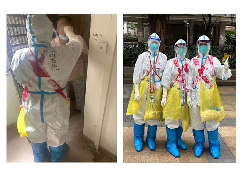 同在海珠突擊隊的鄭智敏,是藥劑科中藥房的藥師。此次加入海珠突擊隊,她先后去了南洲街道、鳳陽街道康鷺片區(qū)等高危區(qū)域,參與紅碼、密接人員及上門核酸采樣任務(wù),在面對惡劣的環(huán)境及高強(qiáng)度的采樣工作時,她始終保持樂觀的心態(tài),不畏艱苦,沖鋒一線!