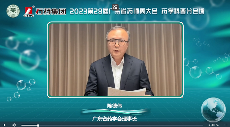 廣東省藥學(xué)會(huì)陳德偉理事長(zhǎng)專(zhuān)門(mén)給藥學(xué)科普分會(huì)場(chǎng)發(fā)來(lái)視頻祝賀、鼓勵(lì)