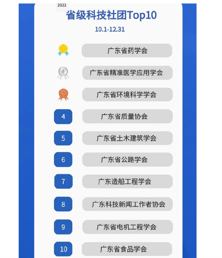 2022年第四季度省級(jí)科技社團(tuán)TOP10榜