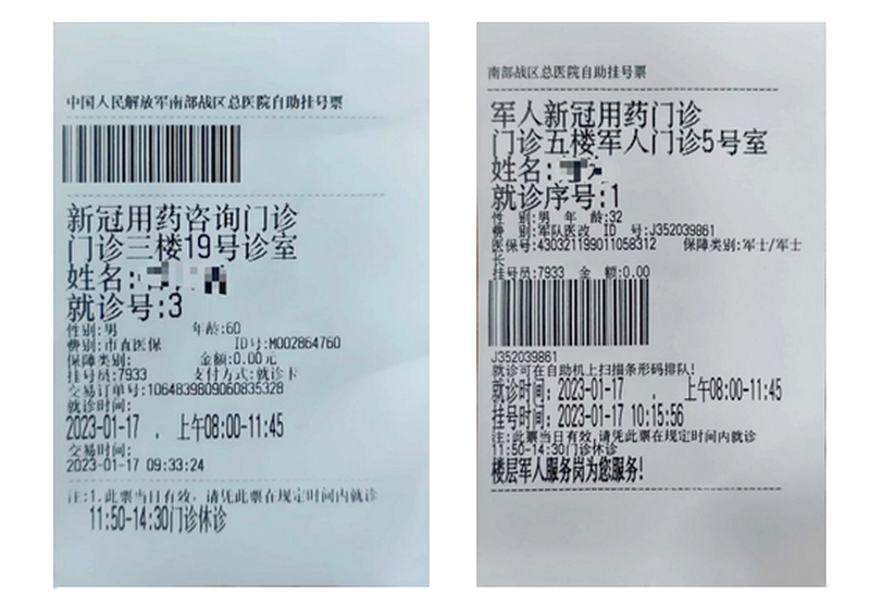 新冠用藥咨詢門診和軍人新冠用藥門診掛號單