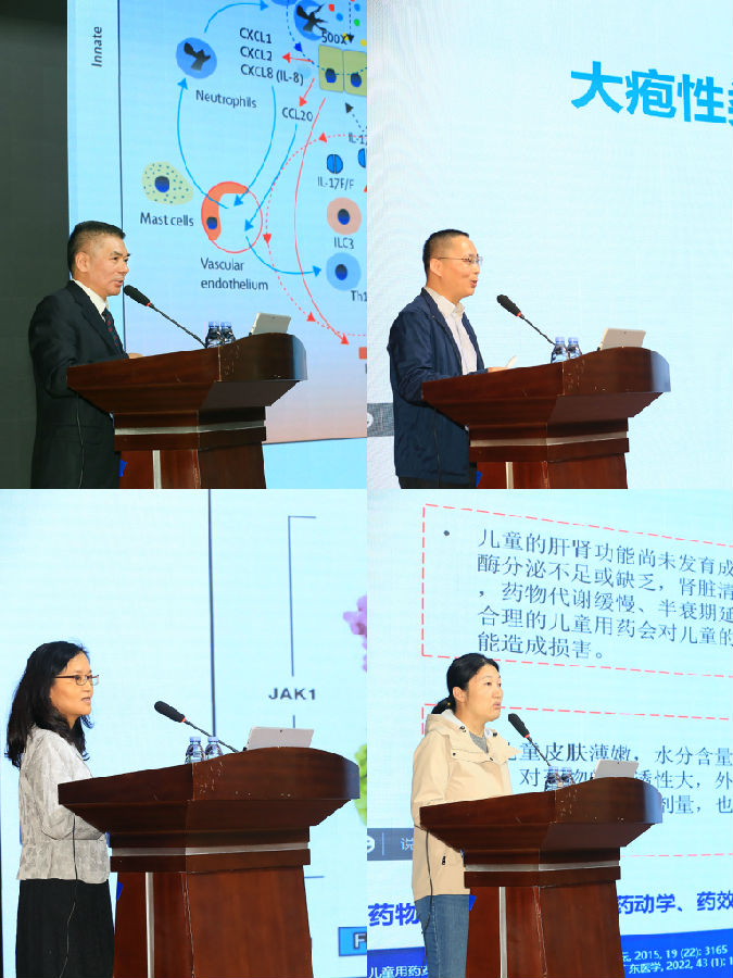 會議邀請到了多位來自各醫(yī)院的專家進行精彩的學(xué)術(shù)授課。中山大學(xué)附屬第一醫(yī)院羅迪青教授首先帶來了《銀屑病治療的過去、現(xiàn)在與將來》,通過闡述銀屑病的發(fā)病機制,梳理了銀屑病治療取得的最新進展;南方醫(yī)科大學(xué)附屬皮膚病醫(yī)院薛汝增教授講述了《大皰性類天皰規(guī)范化診療》,強調(diào)大皰性類天皰診治需從規(guī)范化診斷、完善相關(guān)實驗室檢查入手,并介紹了治療藥物方案的選擇原則、不良反應(yīng)處理、復(fù)發(fā)問題以及隨訪和患教;中山大學(xué)附屬第一醫(yī)院劉雋華教授分享《TAK-STATs通路以及JAK抑制劑在臨床的應(yīng)用》,從JAK-STATs通路方面解釋了抑制JAK家族成員帶來不同的效應(yīng)和影響,結(jié)合我國已上市JAK抑制劑闡述JAKi在皮膚臨床上的應(yīng)用;廣州市婦女兒童醫(yī)療中心李海翩教授傳授《兒童皮膚用藥安全》課題,針對兒童在皮膚科用藥的熱點話題,從兒童生理特點和用藥計量方法出發(fā),總結(jié)了兒童用藥基本原則以及常用藥物用法用量;中山大學(xué)附屬第三醫(yī)院馮佩英教授講述《生物制劑用用于由皮膚主導(dǎo)的多重過敏性疾病》,提出“過敏體質(zhì)”是過敏性疾病產(chǎn)生的根本,IgE是產(chǎn)生過敏的關(guān)鍵,并展示了以患者為中心的MDT/MHT模式的病例分享;廣東醫(yī)科大學(xué)附屬醫(yī)院吳瑋教授展示《富血小板血漿在皮膚科的應(yīng)用》,提出“PRP-吸血鬼”治療法并不難,一一闡述PRP在皮膚科臨床中的制備方法與治療事項;南方醫(yī)科大學(xué)南方醫(yī)院彭學(xué)標(biāo)教授講述《全身糖皮質(zhì)激素在皮膚科的合理應(yīng)用》,從糖皮質(zhì)激素來源、分類、作用機制、劑量劃分、不良反應(yīng)及禁忌癥、使用注意事項、特殊人群應(yīng)用、皮膚科臨床應(yīng)用八個方面體現(xiàn)合理應(yīng)用的重要性;廣州市婦女兒童醫(yī)療中心莫小蘭教授傳授《藥物基因組學(xué)融合機器學(xué)習(xí)探討臨床免疫用藥問題》,從臨床中發(fā)現(xiàn)免疫用藥共病——存在個體差異性問題,通過藥物基因?qū)W分析得出臨床一應(yīng)個體化用藥,展示他克莫司、甲氨蝶呤用藥案例,提出“采用人工智能工具,開發(fā)療效、毒性預(yù)測模型,可有效提升臨床藥師對臨床合理用藥的決策支持”;中山大學(xué)附屬第一醫(yī)院羅迪青現(xiàn)場教學(xué)《皮膚攝影淺談》,通過分析相機影響成像、控制曝光、其他影響成像因素等方面分析照片不清晰的原因,針對在皮膚科臨床中頭部、外陰、腔口等特殊部位以及兒童特殊人群,提出了技巧性方法,結(jié)合后期調(diào)整可輕松駕馭皮膚攝影;最后,南方醫(yī)科大學(xué)附屬皮膚病醫(yī)院、中山大學(xué)附屬第三醫(yī)院、廣東醫(yī)科大學(xué)附屬醫(yī)院、中山大學(xué)附屬第一醫(yī)院分別展示了疑難討論病例,中山大學(xué)附屬第一醫(yī)院韓建德教授、中山大學(xué)附屬第三醫(yī)院陸春教授、南方醫(yī)科大學(xué)讀書皮膚病醫(yī)院薛汝增教授以及現(xiàn)場的專家教授針對各病例積極討論并提出建議。