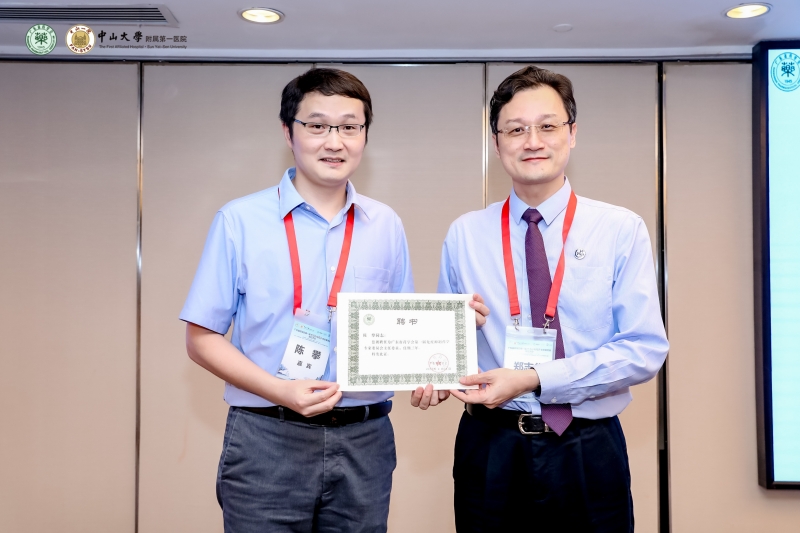 鄭志華副理事長(zhǎng)兼秘書(shū)長(zhǎng)為陳攀教授頒發(fā)主任委員聘書(shū)
