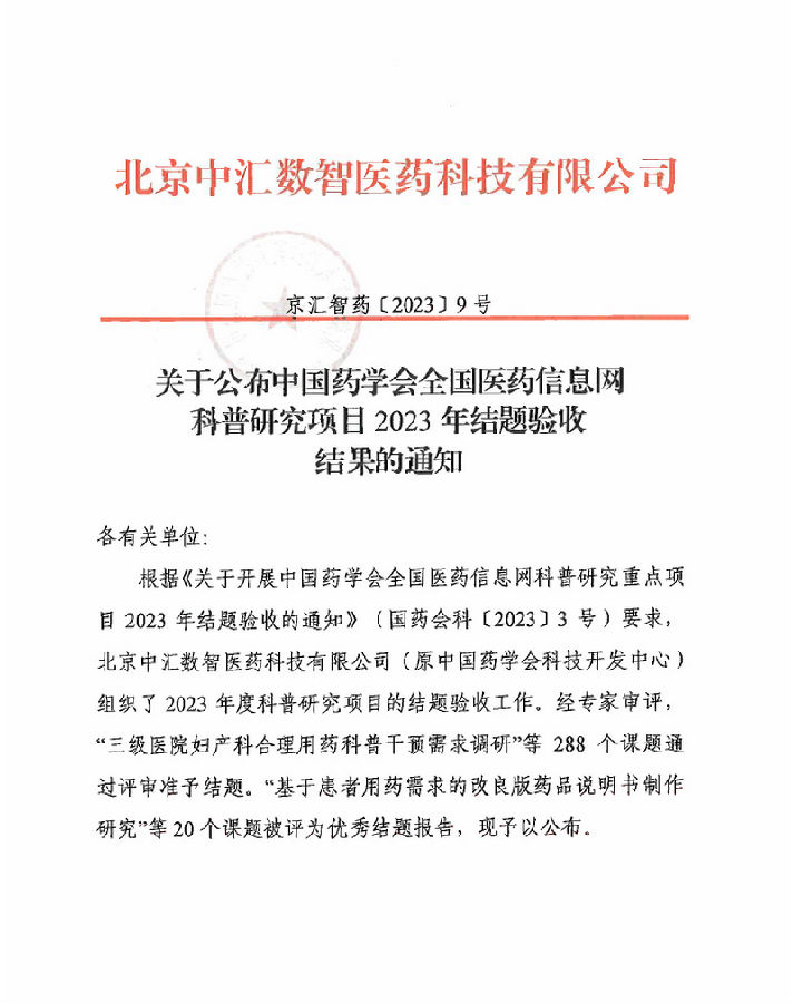附件:紅頭-關(guān)于公布中國藥學會全國醫(yī)藥信息網(wǎng)2023年科普研究項目結(jié)題驗收結(jié)果的通知.pdf
