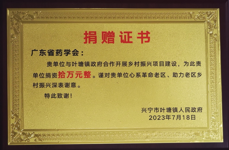 廣東省藥學(xué)會作為“雙5級”省級先進(jìn)學(xué)術(shù)社團(tuán)和省藥品監(jiān)管局主管的學(xué)會,歷年來一直積極支持省藥品監(jiān)管局各項工作,對梅州興寧市葉塘鎮(zhèn)鄉(xiāng)村振興工作也給予積極支持。