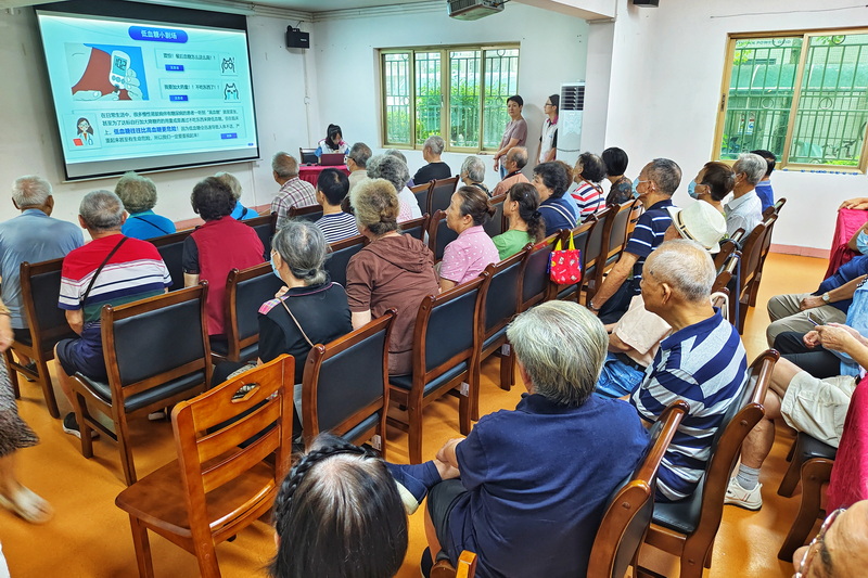第一環(huán)節(jié):“科普小講課”,由賦能藥師以科普課堂形式,向與會(huì)老干部及家屬們講解冠心病的合理用藥和低血糖的防范科普知識(shí),老人們聽得聚精會(huì)神。