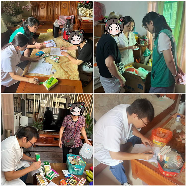 科普結(jié)束后,藥師志愿者兵分三路到當(dāng)?shù)卮迕窦抑虚_展居家藥學(xué)服務(wù),包括居家藥箱整理、過期藥品處理指導(dǎo)和長期疾病用藥宣教。