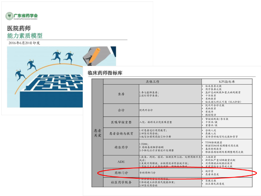 2016年6月,我會發(fā)布《醫(yī)院藥師能力素質模型》,首先將藥師門診列入醫(yī)院藥師的KPI(關鍵績效指標)。