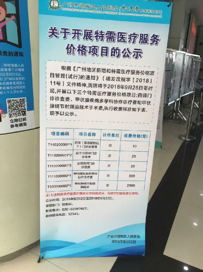 2018年9月,根據(jù)廣州市發(fā)改委、廣州市衛(wèi)計委《廣州地區(qū)新增和特需醫(yī)療服務價格項目管理辦法(試行)》(穗發(fā)改規(guī)字〔2018〕11號)要求,廣州市增城區(qū)人民醫(yī)院將藥師門診診查費成功備案,成為國內第一個被政府認可的藥學門診收費。