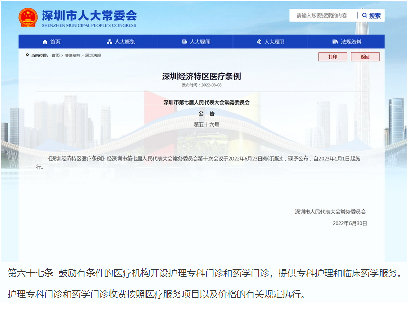 圖14 2022年6月藥學門診寫入《深圳經濟特區(qū)醫(yī)療條例》,代表藥學門診入法