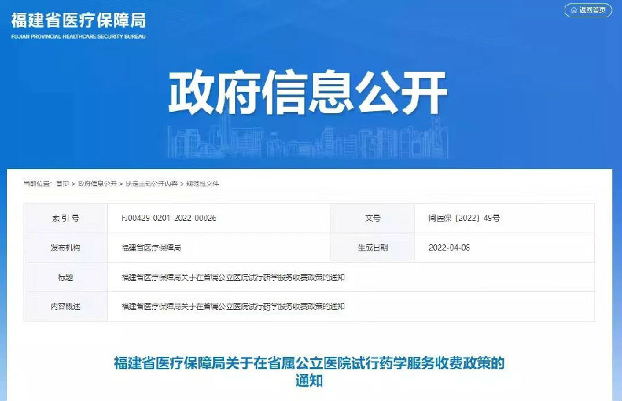 2022年4月,福建省醫(yī)療保障局發(fā)布關于在省屬公立醫(yī)院試行藥學服務收費政策的通知,明確了藥物治療門診的收費標準和醫(yī)保屬性,這是我國第一次將藥學門診收費納入醫(yī)保。