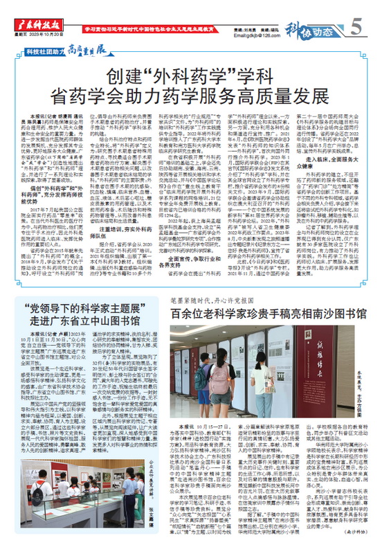 廣東省藥學會會“外科藥學”工作項目榮譽入選,并于2023年10月20日在“科技社團助力高質(zhì)量發(fā)展”專欄頭版報道。