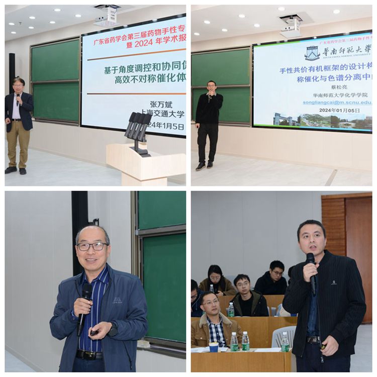 最后,會(huì)議舉行了藥物手性專委會(huì)2024年學(xué)術(shù)報(bào)告會(huì),由新任常務(wù)副主任委員暨南大學(xué)陳國(guó)棟研究員主持。張萬(wàn)斌、李向軍、華南師范大學(xué)蔡松亮教授、暨南大學(xué)王永恒研究員分別以不對(duì)稱催化體系構(gòu)建、手性共價(jià)有機(jī)框架構(gòu)筑、酶催化的立體化學(xué)調(diào)控機(jī)制、手性分子分離分析為主題進(jìn)行了精彩的報(bào)告,展示了在各自研究領(lǐng)域的最新研究成果,為大家?guī)?lái)一場(chǎng)精彩紛呈的學(xué)術(shù)盛宴。