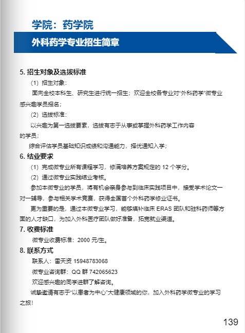 日前,吉林大學(xué)“外科藥學(xué)”微專(zhuān)業(yè)開(kāi)始招生,參加學(xué)員將獲得醫(yī)藥高等教育第一個(gè)外科藥學(xué)修業(yè)證書(shū)!