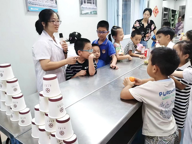 本次活動共40名學(xué)生參加,在藥師帶領(lǐng)下首先參觀了純化水制備車間,了解純化水凈化的一般流程,并學(xué)習(xí)飲用水、純化水、注射用水、無菌注射用水的區(qū)別;接著參觀藥品外包裝車間,學(xué)習(xí)藥品內(nèi)服外用標(biāo)識區(qū)別、口服液開啟小技巧、藥品內(nèi)外包裝帖簽及打包裝盒過程等知識,并親自動手體驗了該醫(yī)院的自制藥劑“咽炎飲”的內(nèi)標(biāo)簽貼簽及裝盒過程。不一樣的社會實踐活動受到學(xué)生和家長們的一致好評。