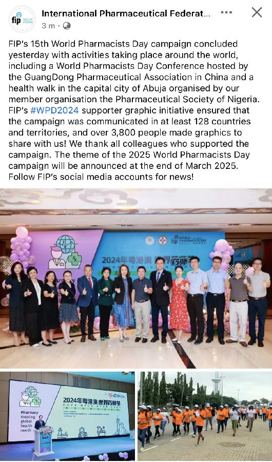 廣東省藥學(xué)會2024年世界藥師節(jié)慶?;顒?dòng)上了FIP官微的頭條