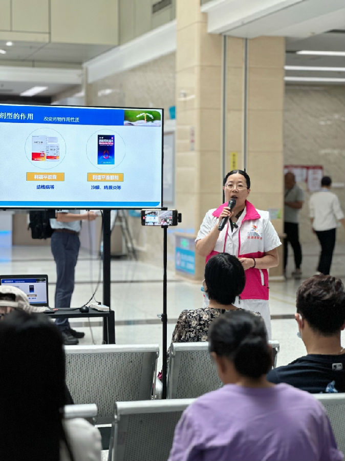 PSM廣醫(yī)五院工作站李詠梅站長(zhǎng)為門診大廳的患者們帶來(lái)《小小藥片,大大講究》的科普講座。李主任結(jié)合具體的案例,講述了藥物劑型的特點(diǎn)及作用,讓在座的患者對(duì)不同藥品劑型的使用方法有了更加直觀的認(rèn)識(shí)。