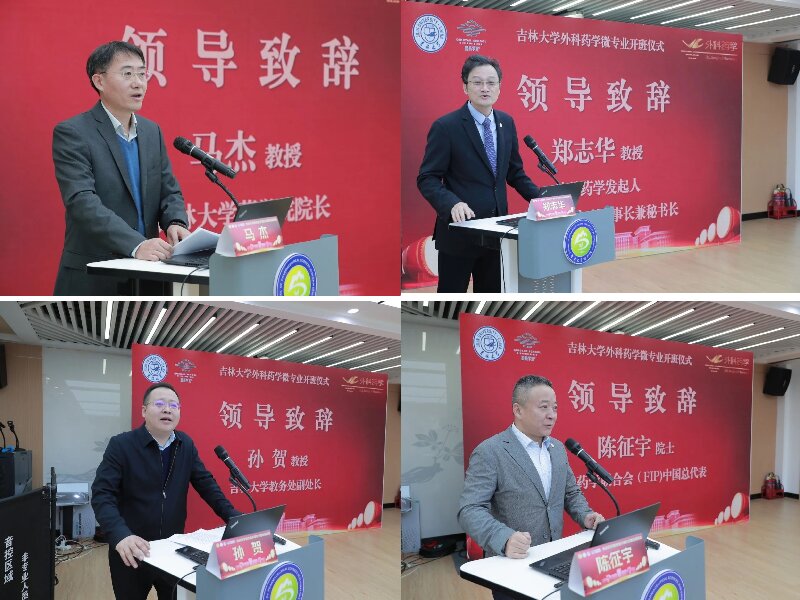 2024年11月9日,吉林大學(xué)外科藥學(xué)微專業(yè)開班儀式在吉林大學(xué)藥學(xué)院隆重舉行。國際藥學(xué)聯(lián)合會中國總代表陳征宇院士、外科藥學(xué)發(fā)起人廣東省藥學(xué)會副理事長兼秘書長鄭志華教授、中國醫(yī)學(xué)論壇報社王思恒主編、吉林大學(xué)教務(wù)處孫賀副處長、吉林大學(xué)藥學(xué)院馬杰院長、曲淵立書記、徐華麗副院長、外科藥學(xué)微專業(yè)負(fù)責(zé)人吉林大學(xué)第一醫(yī)院宋燕青主任、外科藥學(xué)微專業(yè)授課教師團隊以及首屆外科藥學(xué)微專業(yè)的 31 名學(xué)員共同出席了開班儀式。