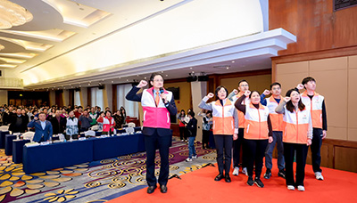 接著,會議進行PSM藥盾公益新工作站成立、授旗、全體志愿者宣誓及頒發(fā)證書的環(huán)節(jié)。首先,PSM藥盾公益廣東總站長吳新榮主任隆重宣布2個新工作站的成立,分別是PSM藥盾公益中山大學中山眼科中心工作站和PSM藥盾公益廣州市老年醫(yī)院工作站。隨后吳新榮主任和鄭志華副理事長為新成立工作站授旗并頒發(fā)證書,鄭副理事長帶領(lǐng)大家重溫志愿者誓詞,宣誓現(xiàn)場莊嚴肅穆,十分神圣。