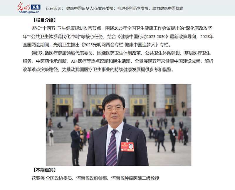 【本期嘉賓】花亞偉 全國政協(xié)委員、河南省政府參事、河南省腫瘤醫(yī)院二級教授