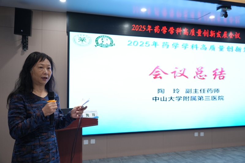 在討論環(huán)節(jié),中山大學(xué)各附屬醫(yī)院的藥學(xué)專家圍繞“探索推動醫(yī)院藥學(xué)高質(zhì)量發(fā)展的舉措和經(jīng)驗”展開深入的交流與探討。與會專家們分享了各自在藥學(xué)作中的寶貴經(jīng)驗,現(xiàn)場氣氛熱烈。討論結(jié)束后,陶玲副主任為本會場作總結(jié)發(fā)言。