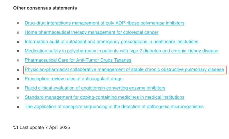全文詳細(xì)內(nèi)容請(qǐng)到FIP鏈接:https://www.fip.org/files/content/FIP_members_across_the_globe/FIP_in_China/Expert_Consensus_on_Physician-Pharmacist_Collaborative_Management_of_Stable_Chronic_Obstructive_Pulmonary_Disease.pdf