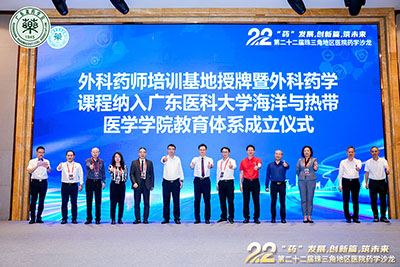 外科藥師培訓(xùn)基地授牌儀式暨外科藥學(xué)課程納入廣東醫(yī)科大學(xué)海洋與熱帶醫(yī)學(xué)學(xué)院教育體系成立儀式