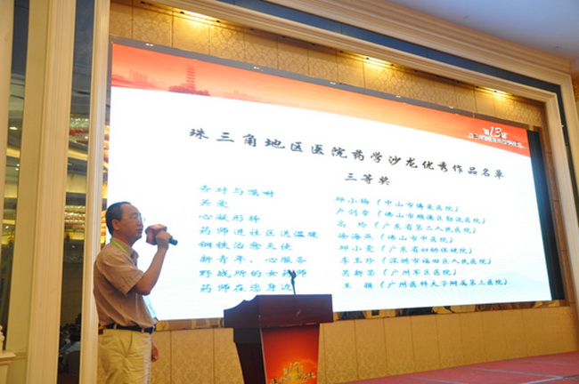 為豐富本屆沙龍活動內容,發(fā)現(xiàn)、展示藥學工作以及藥師們的動人事跡和感人瞬間,充實業(yè)余生活,提高藥師攝影及審美水平,本屆沙龍還同時舉辦了“藥師的故事”主題攝影比賽,共征集作品53幅,評選出一等獎2名,二等獎5名,三等獎10名,由廣東省藥學會陳民喜副秘書長主持攝影賽頒獎,并邀請了鄭志華秘書長、楊艷副總經(jīng)理和江蘇新晨醫(yī)藥有限公司高峰總監(jiān)分別為一、二、三等獎獲獎作者頒發(fā)證書。