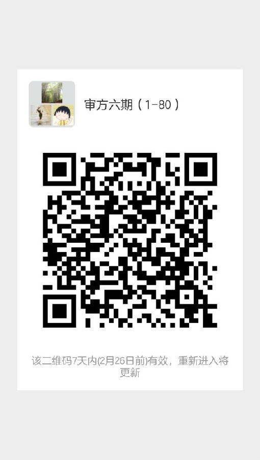 三、請按照錄取名單編號,按編號盡快掃描下圖二維碼加入學(xué)員微信群,1-80號加入微信群“審方六期(1-80)”,81-152號加入微信群“審方六期(81-152)”,培訓(xùn)相關(guān)事宜會在群上通知,學(xué)員入群后將群昵稱更改為“編號 姓名 醫(yī)院”,歡迎加入審方班大家庭?。?!